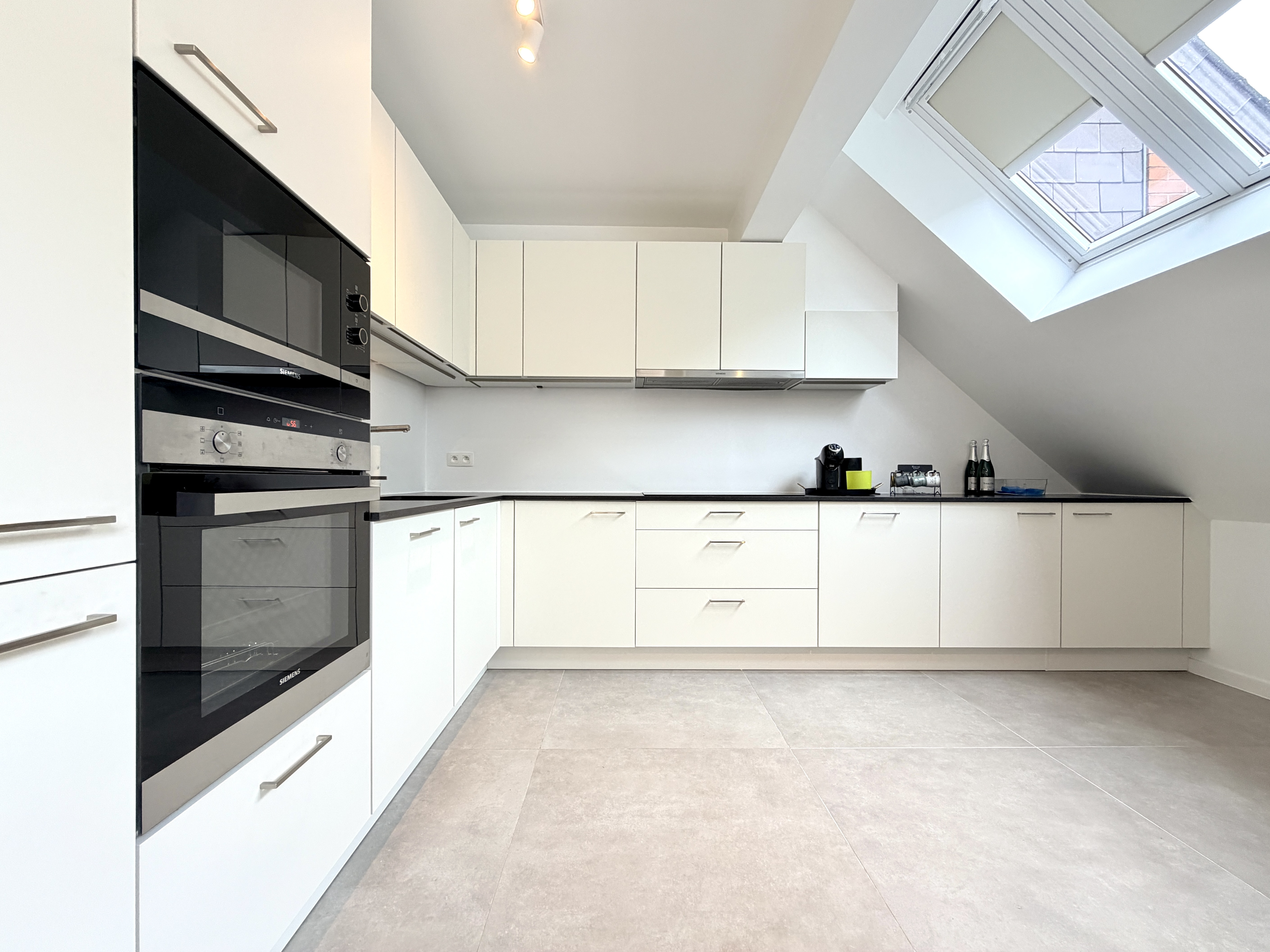 Superbe duplex 2 chambres idéalement situé au pied de la Citadelle de Namur. Celui-ci est en très bon état d'entretien, il vous séduira par la qualité des matériaux, son agencement et sa luminosité. L'appartement se compose d'un hall d'entrée avec vestiaire et wc séparé, d'un bel espace de vie avec ouverture sur la cuisine équipée et accès sur la terrasse, de 2 chambres, 2 salles d'eau, une cave et un emplacement de parking intérieur. Il dispose de tout le confort moderne: ascenseur, châssis double vitrage, chauffage individuel au gaz, luminaires et stores déjà placés, local vélos. Charges: provison de 150€ pour l'entretien et l'électricité des communs, frais de syndic, ascenseur, eau privative, etc. Libre le 1er juillet 2026, renseignements complémentaires au 081/23.03.43