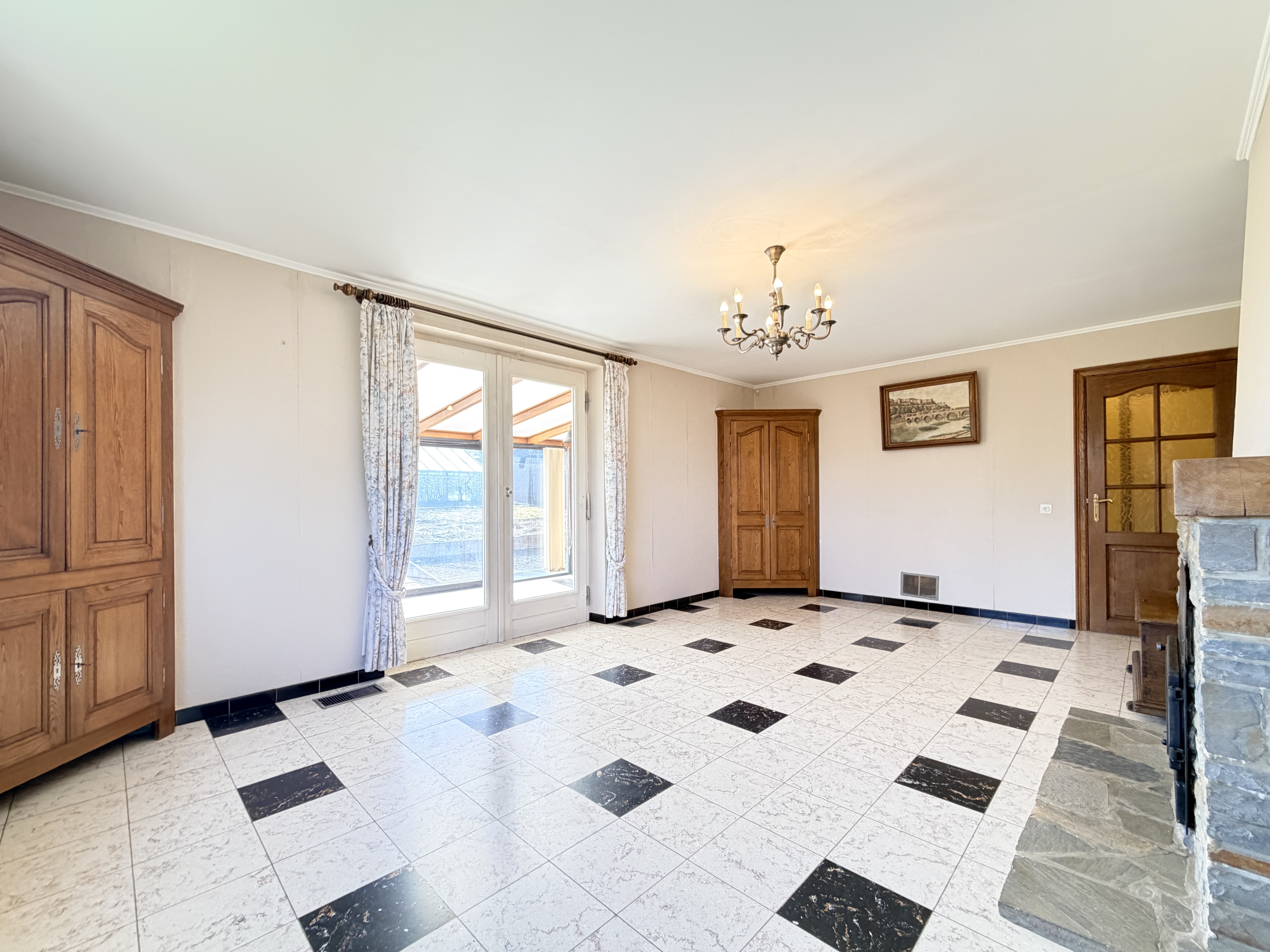 - Séjour: (4.03x6.20) 25.00m2, carrelage, feu ouvert